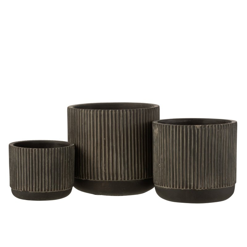J-Line Flowerpot Line Ceramic Black/Brown Large